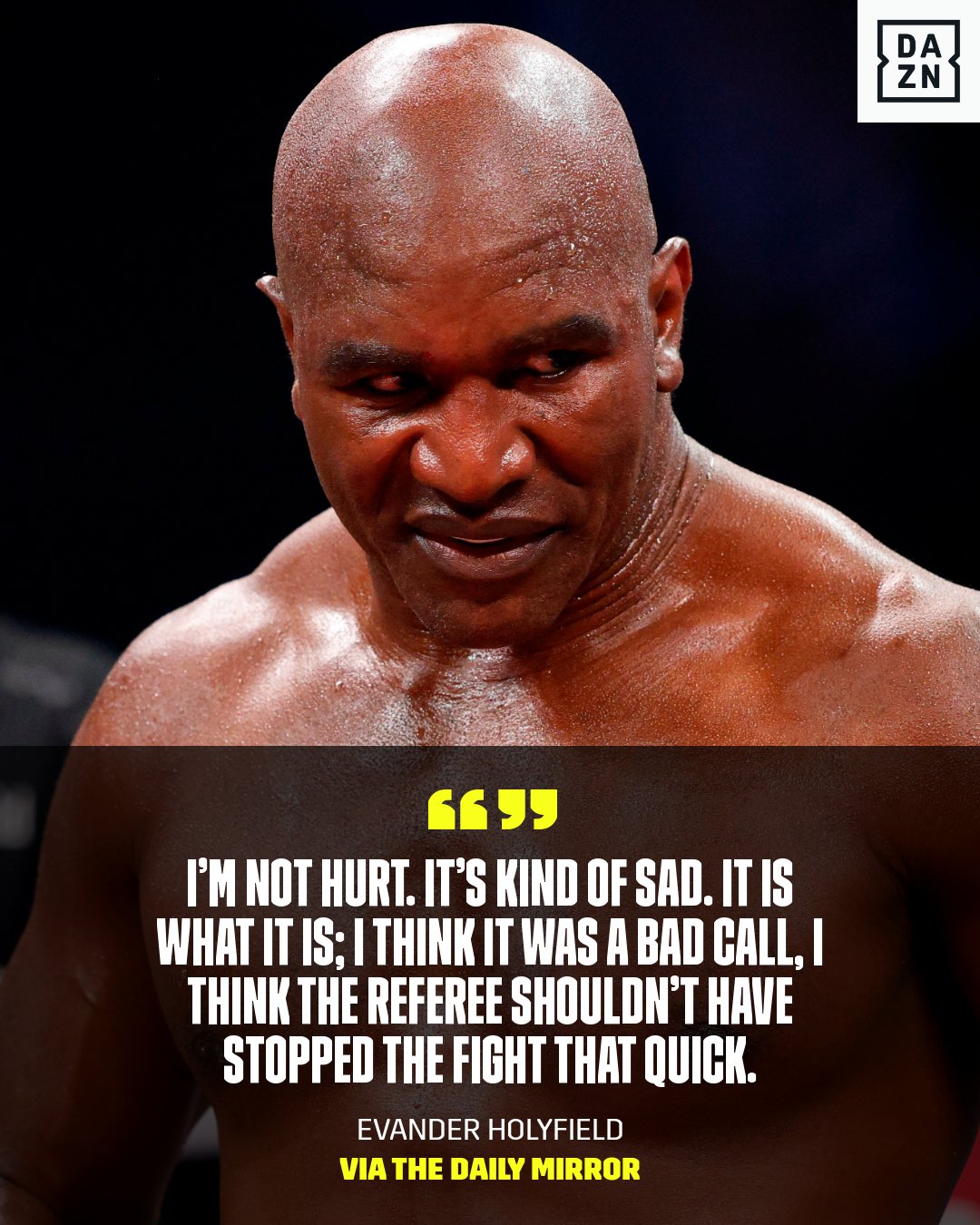 7 hours agoEvander Holyfield remained defiant after his first round technical knockout loss to Vitor Belfort last night saying he isnt done with boxing just yet.