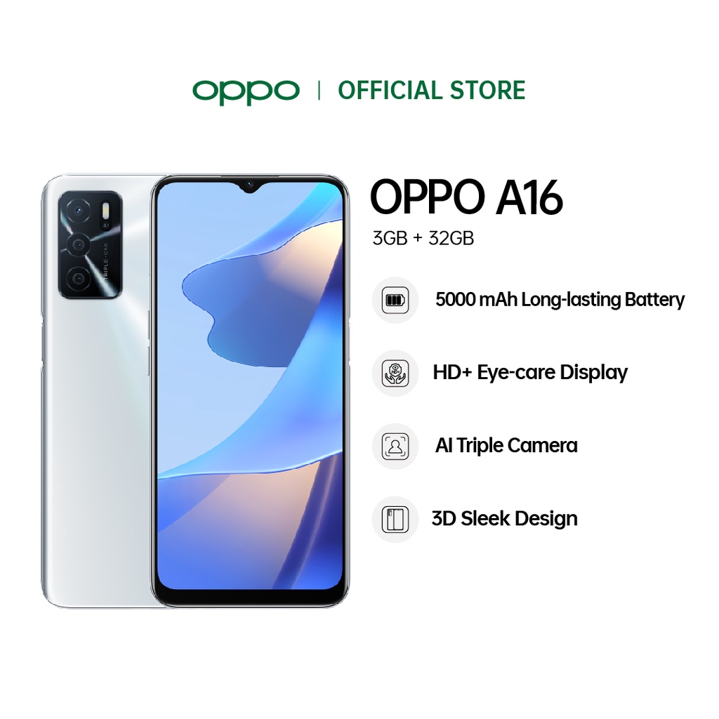Oppo A16 Smartphone 3gb Ram 32gb Rom Expandable Memory L Ai Triple Camera Immersive Display Bigger Battery Shopee Malaysia