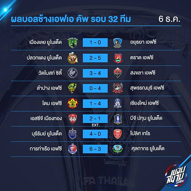 วนพธท 27 ตลาคม 2564. นนทวฒน ชนชมเดกเชยงราย แม. สรปผลการแขงขนฟตบอล ชาง เอฟเอ คพ ฤดกาล 202122 รอบ 64 ทมสดทย.